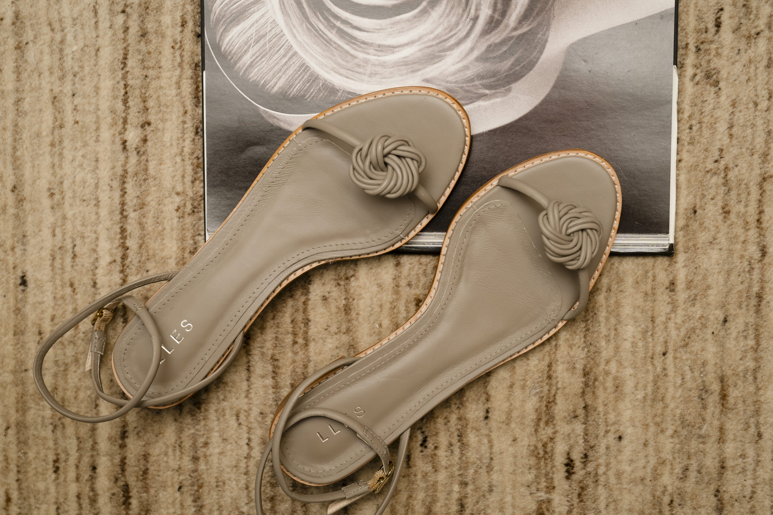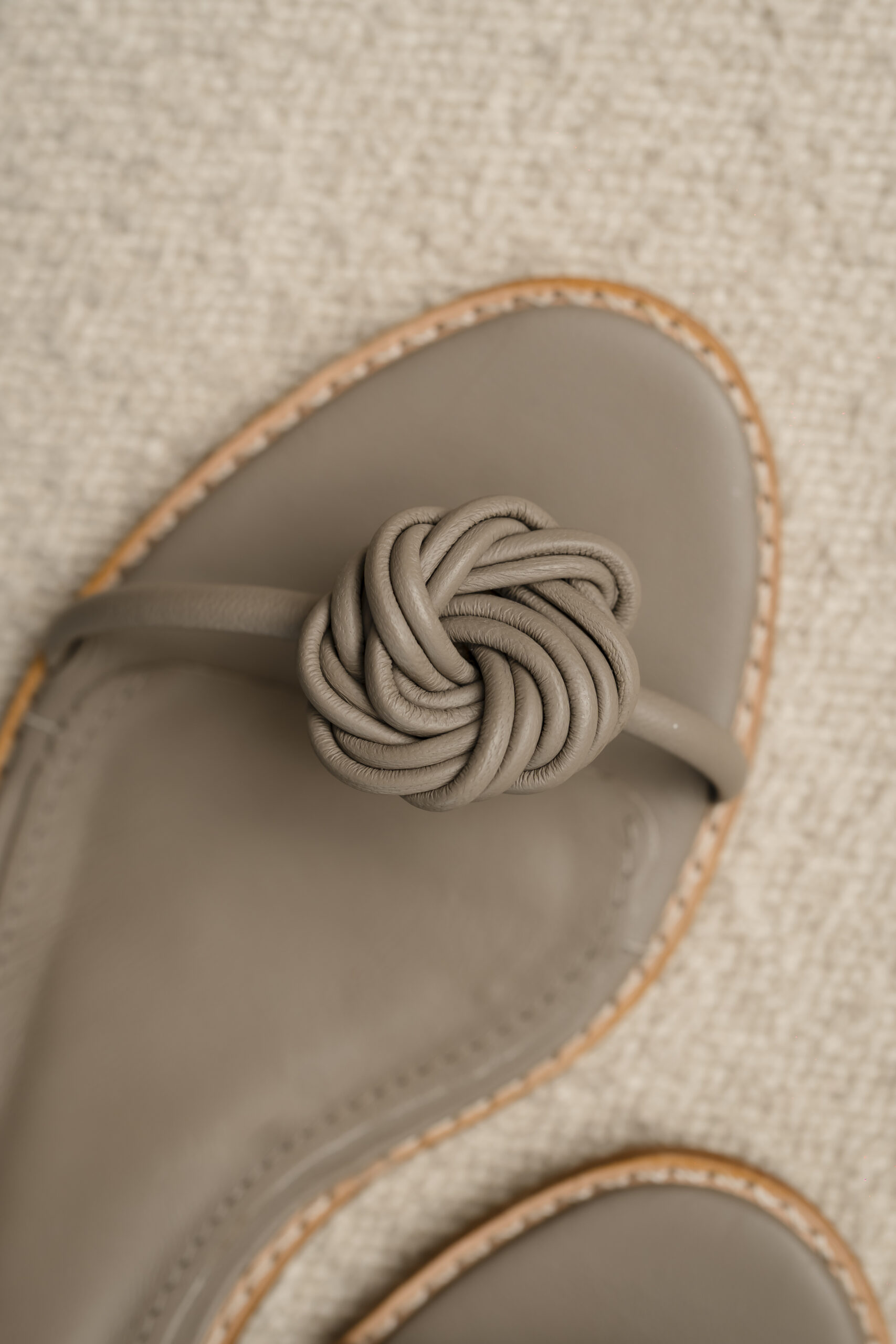 Lindo detalhe trançado em tira em couro.