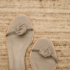 Modelo confeccionado em couro nobre de origem 100% natural, na cor fendi, palmilha acolchoada e tira de couro no mesmo tom.
