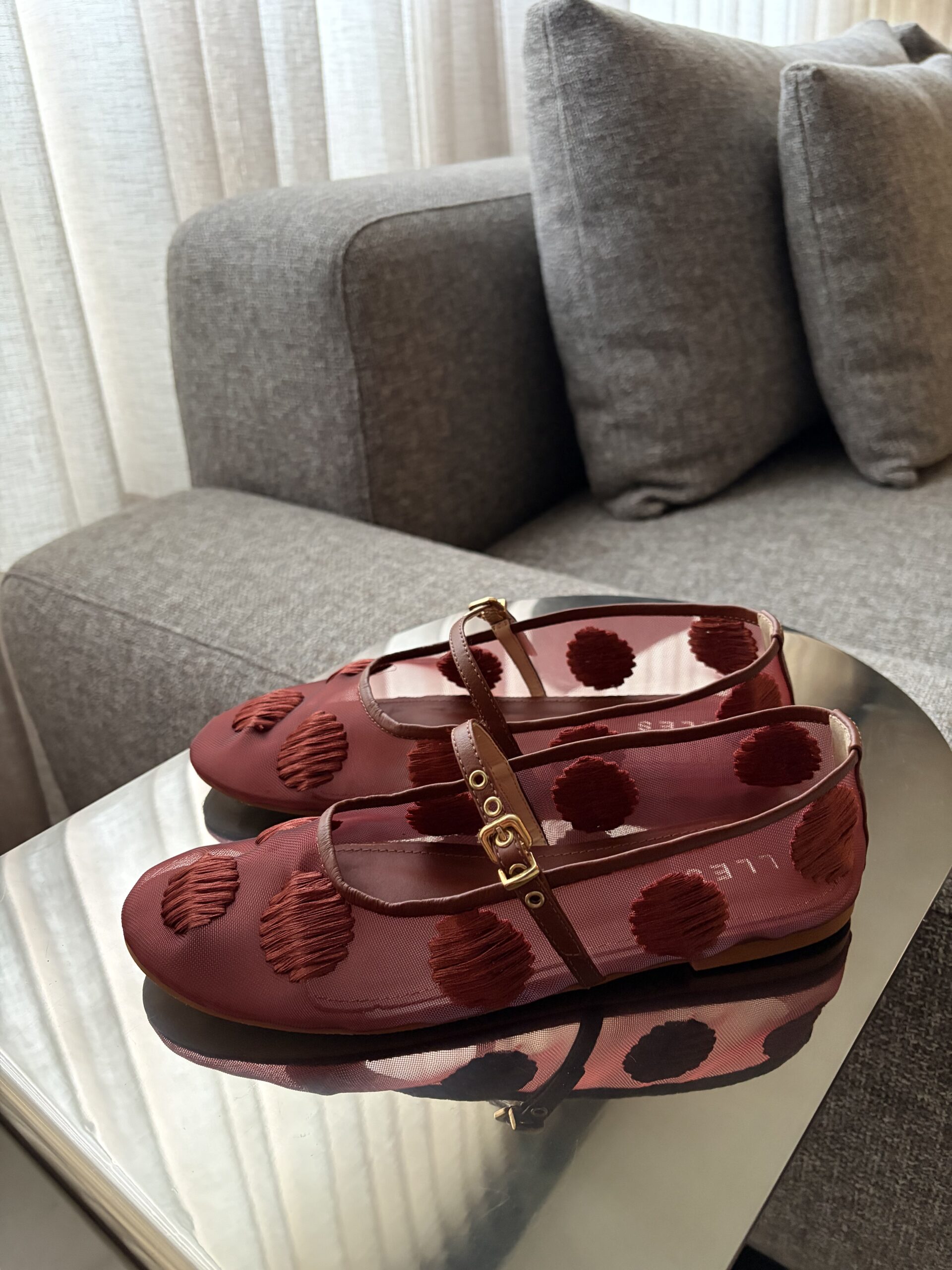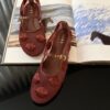 Modelo confeccionado em tela transparente na cor terracota com detalhe de bolas em linha, e em couro nobre de origem 100% natural, também na cor terracota. Solado em Couroplac (durabilidade superior), palmilha acolchoada macia em couro natural.